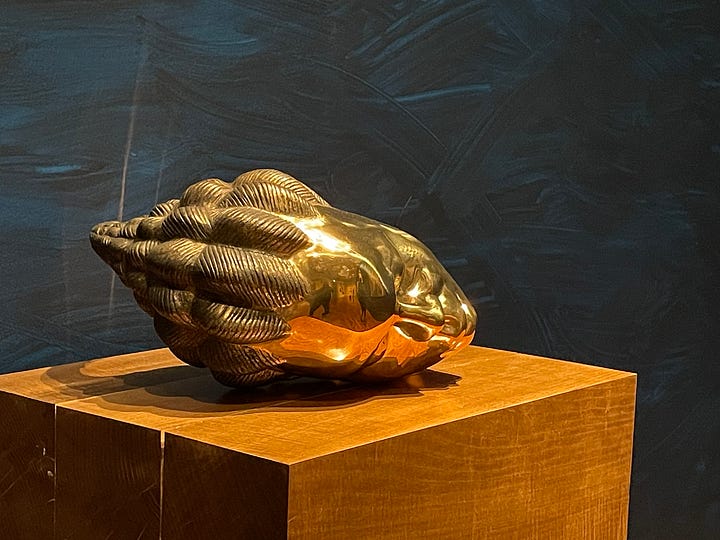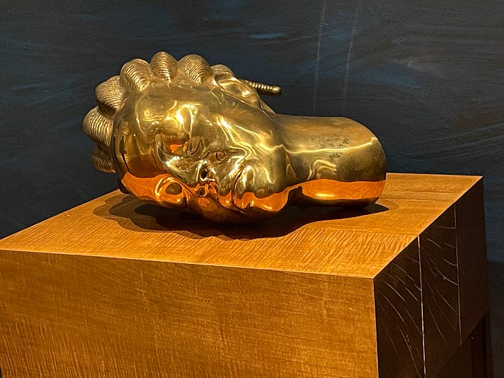 There were many other works I admired too. For example, this bronze head by Kenyan-American Wangechi Mutu (b. 1972) “The Second Dreamer” (bronze and wood, 2017.) It deliberately evokes Brancusi’s ‘Sleeping Muse’ (1910). As you might know, he drew his inspiration from his collection of African masks, as well as from Native American totems and Oceanic tiki figures. I love the way all these cultures influence artists and especially how Mutu harnesses this artistic history to reclaim the mask and make a ‘Back-at-you’ work.