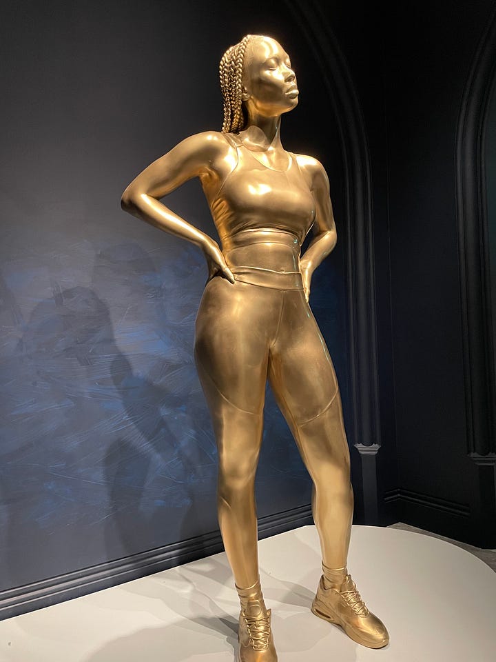 And what about this golden girl, by sculptor Thomas J. Price? I found it thrilling to see the figure of a black female dominating a gallery like a classical goddess. Price is the only artist to create a piece specifically for the exhibition. Called As Sounds Turn to Noise, it took a year to make, stands 2.8m (9ft) tall, is made of bronze.
